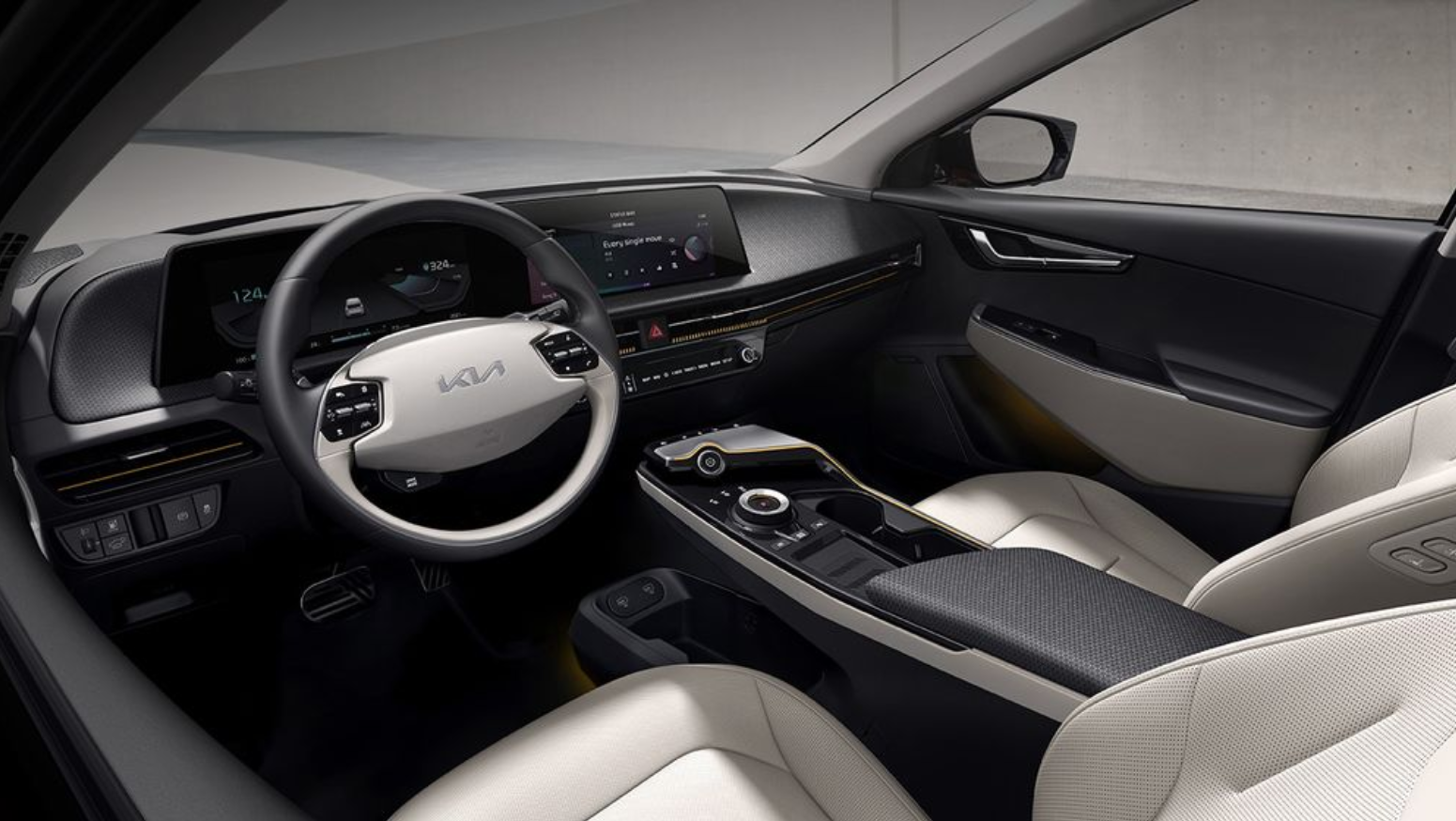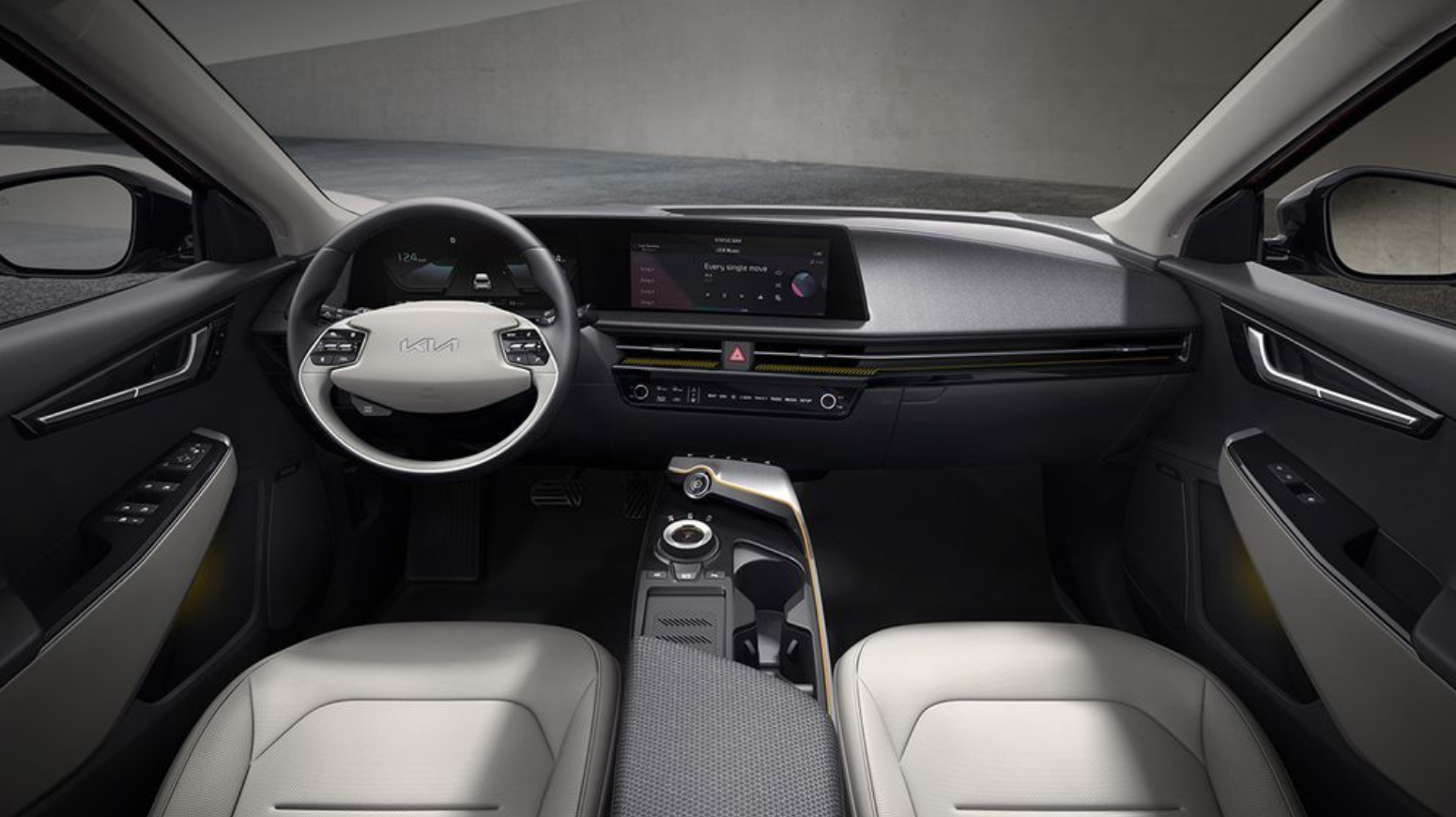 센서콘솔이 없는 아이오닉5와 달리 EV6는 센서콘솔이 존재하고 다이얼식 기어가 들어가며, 시트 및 스티어링 열선 등 터치식 버튼을 배치하여 운전자 사용성을 최우선으로 고려했습니다.